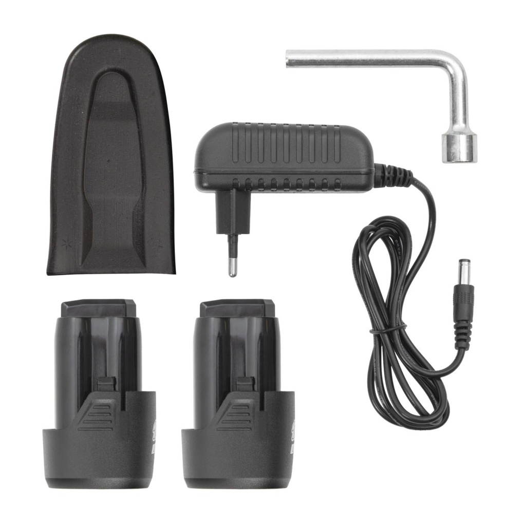Součástí balení: 2.baterie 16V 2Ah, montážní klíč a olejnička, vodicí lišta, pilový řetěz, ochranný kryt, nabíječka. Bezúhlíkový motor Otáčky motoru: 4600/min Rychlost řetězu: 6,7m/s Délka lišty: 100mm Rozteč řetězu: 1/4" 1.1mm Hmotnost: 1,2kg