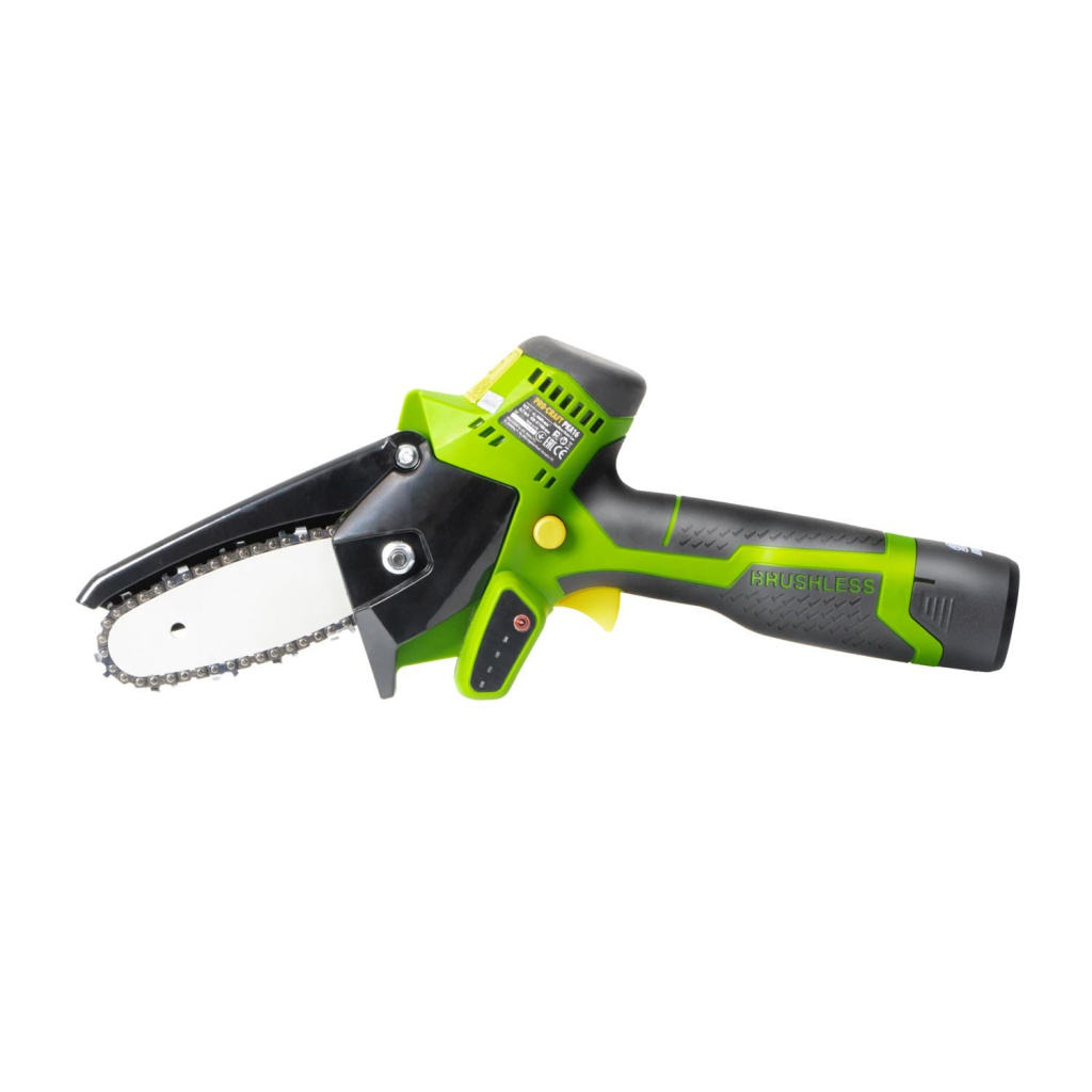 Při svých skromných rozměrech pila má značnou výkonovou zásobu, kterou zajišťuje bezkartáčový motor ve spojení s 16voltovým akumulátorem, což umožňuje provádět řezy po celé délce vodicí lišty bez přetížení nebo zaseknutí.