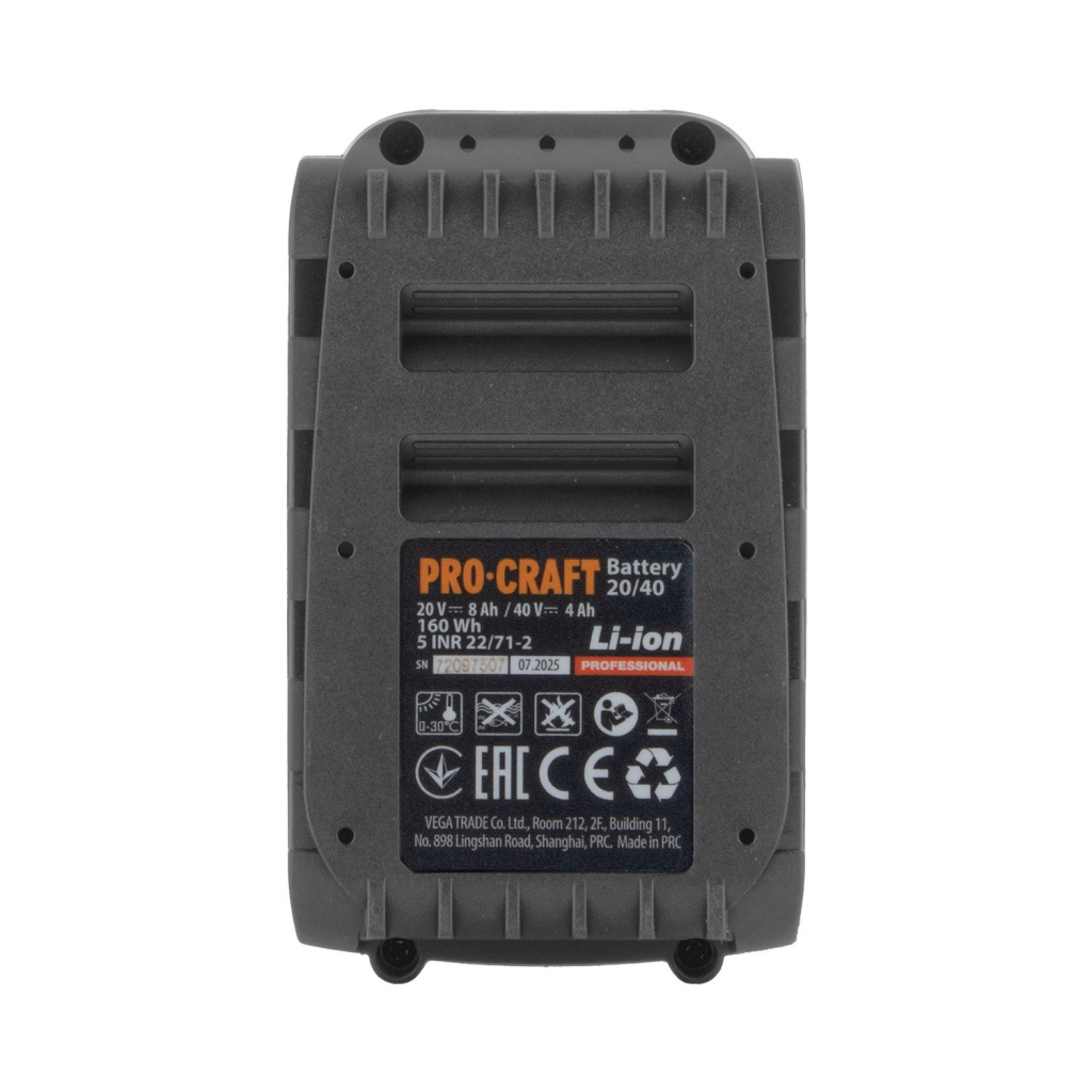 Dvouplatformové napětí 20/40V: Jediná baterie kompatibilní se dvěma řadami nářadí Procraft. Automaticky se přizpůsobí stroji, do kterého ji vložíte.