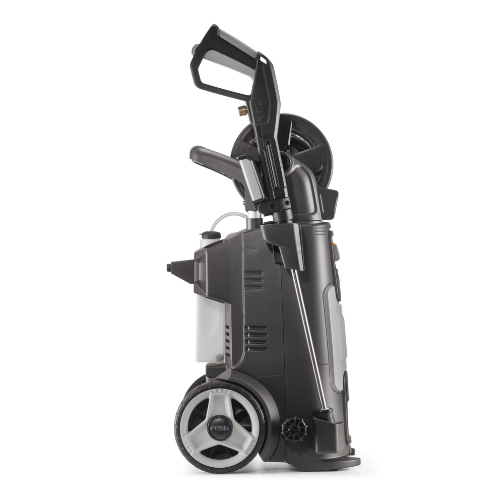 STIGA HPS 650 RG zajišťuje výkonné hloubkové čištění řady povrchů, od zahradních strojů až po nádvoří, auta, dodávky a plavecké bazény. Tato tlaková myčka na studenou vodou je poháněna elektromotorem o příkonu 2800 W, který dodává maximální tlak až 150 barů s průtokem až 550 l/h. Inovativní extra rukojeť STIGA a knoflík pro regulaci tlaku poskytují maximální uživatelský komfort. Vysokotlaká hadice má délku 12 metrů a je vyrobena ze zesíleného materiálu. Navíjí se pomocí navijáku s hliníkovými vodítky. Čisticí prostředek se nasává automaticky pomocí trubice s nastavitelnou hlavou, přičemž dávkování se ovládá pomocí knoflíku umístěného na přední straně stroje. Velká pryžová kolečka a teleskopická rukojeť usnadňují přesuny, takže můžete manévrovat kolem jakýchkoli čištěných předmětů bez ohrožení stability. Ovládací prvky jsou snadno přístupné a dobře viditelné.